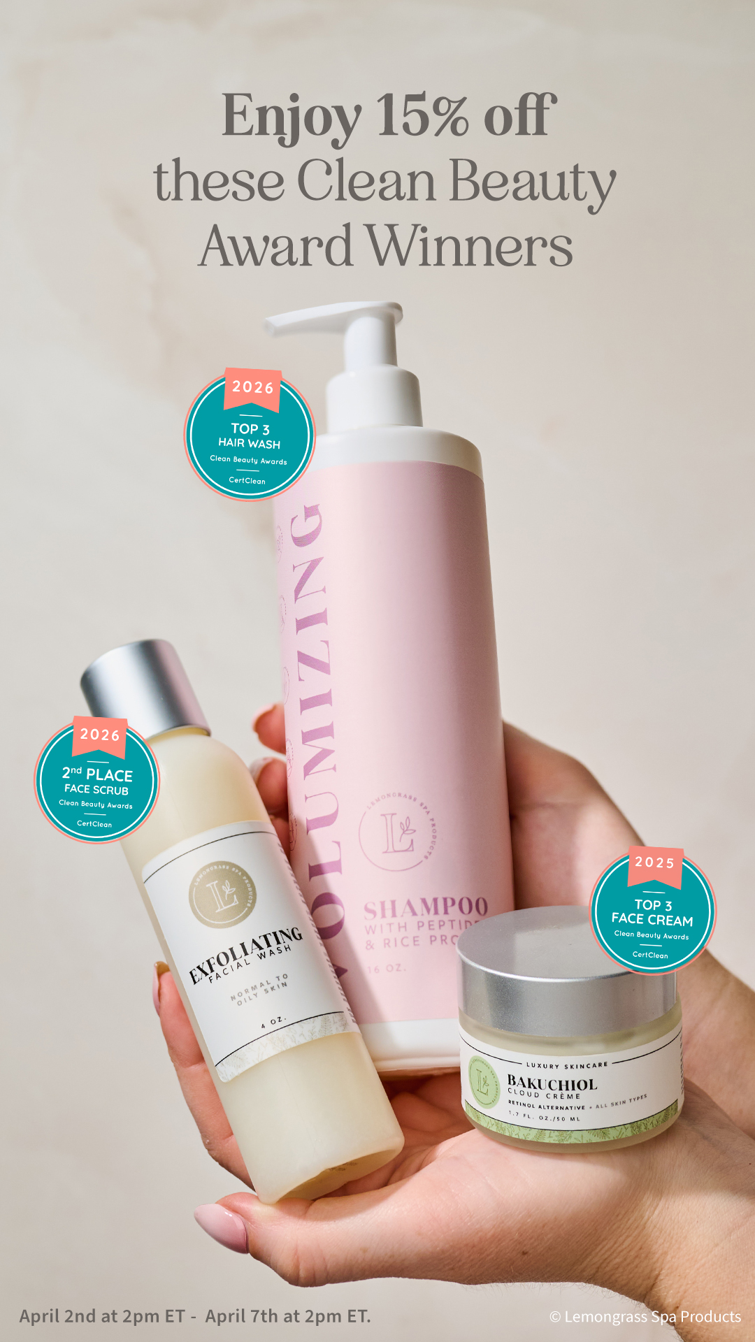 For two years in a row, Lemongrass Spa has been recognized for award-winning, high-performance formulations that deliver real results. In addition to our new and improved Vitamin C products, we’re treating you to 15% off our Clean Beauty award winners!